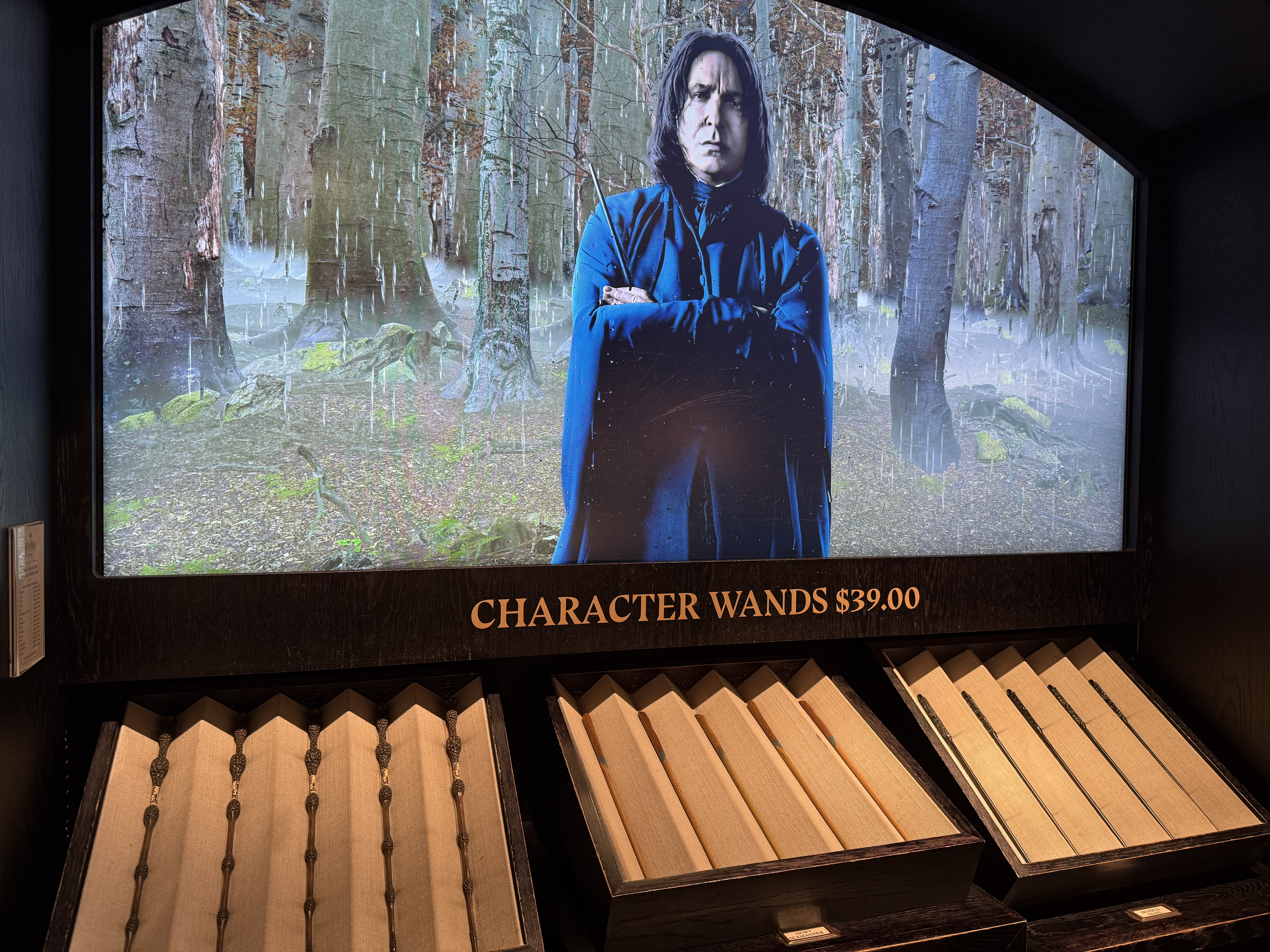 魔杖是有不同價格的,角色越有名,魔杖價格越高,裡面看到的萬物皆可賣,還有 1:1 的光輪 2000,真的是很老美的風格。