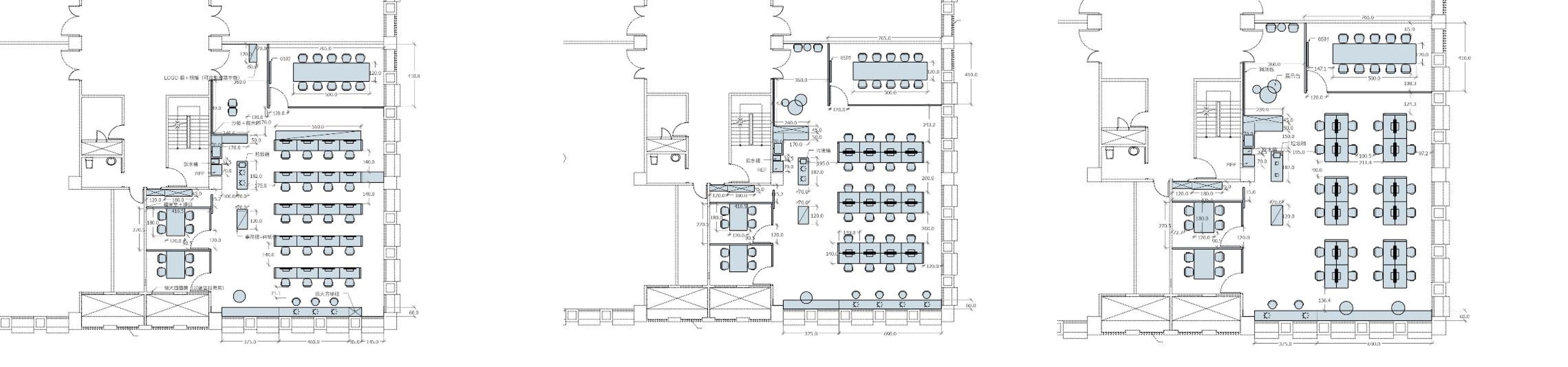 會議室的大小以及位置都差不多,區別較大的部分在座位區的擺放位置。最後我們選擇中間的B方案。確認完設計後,馬上開工!