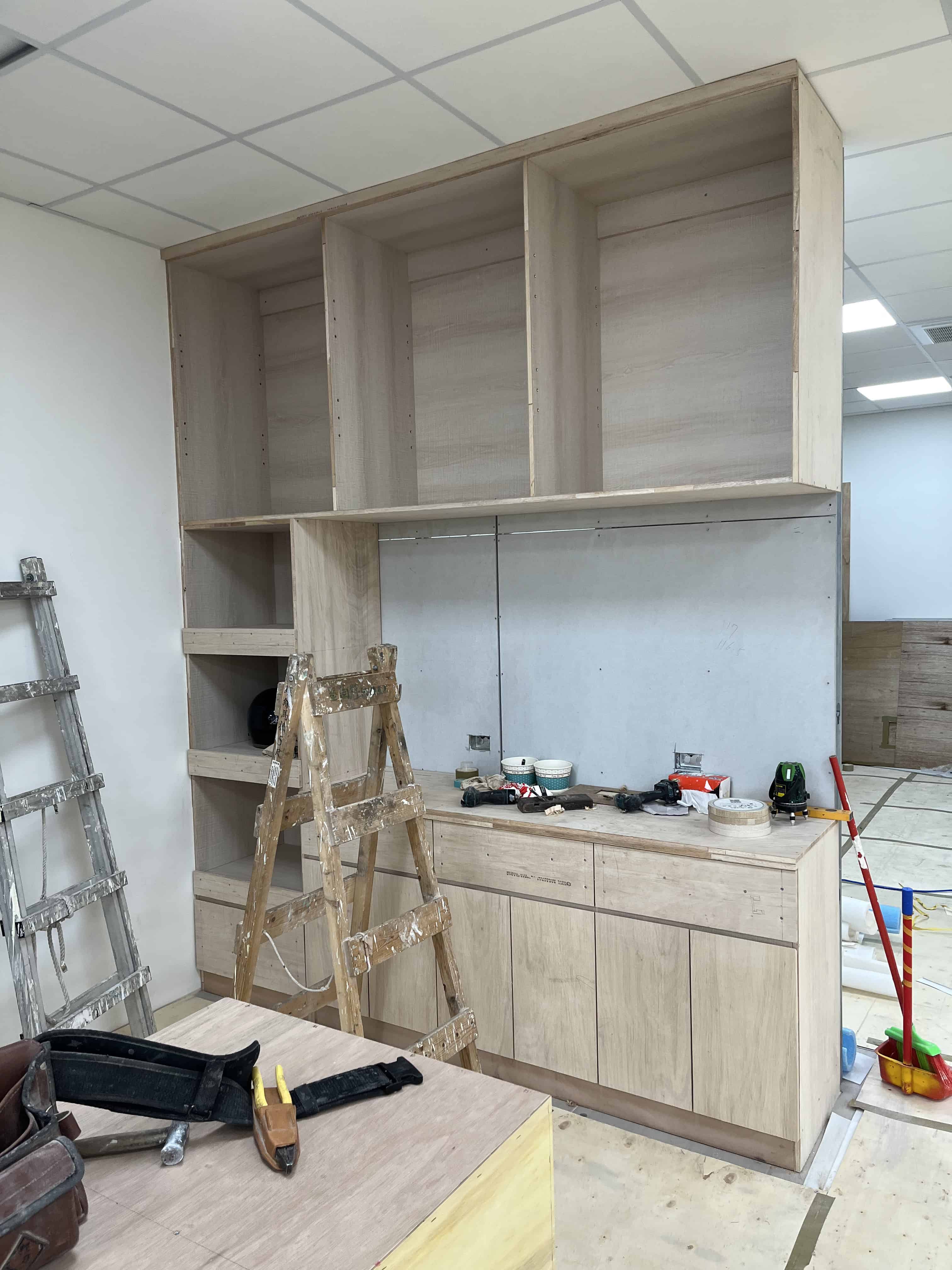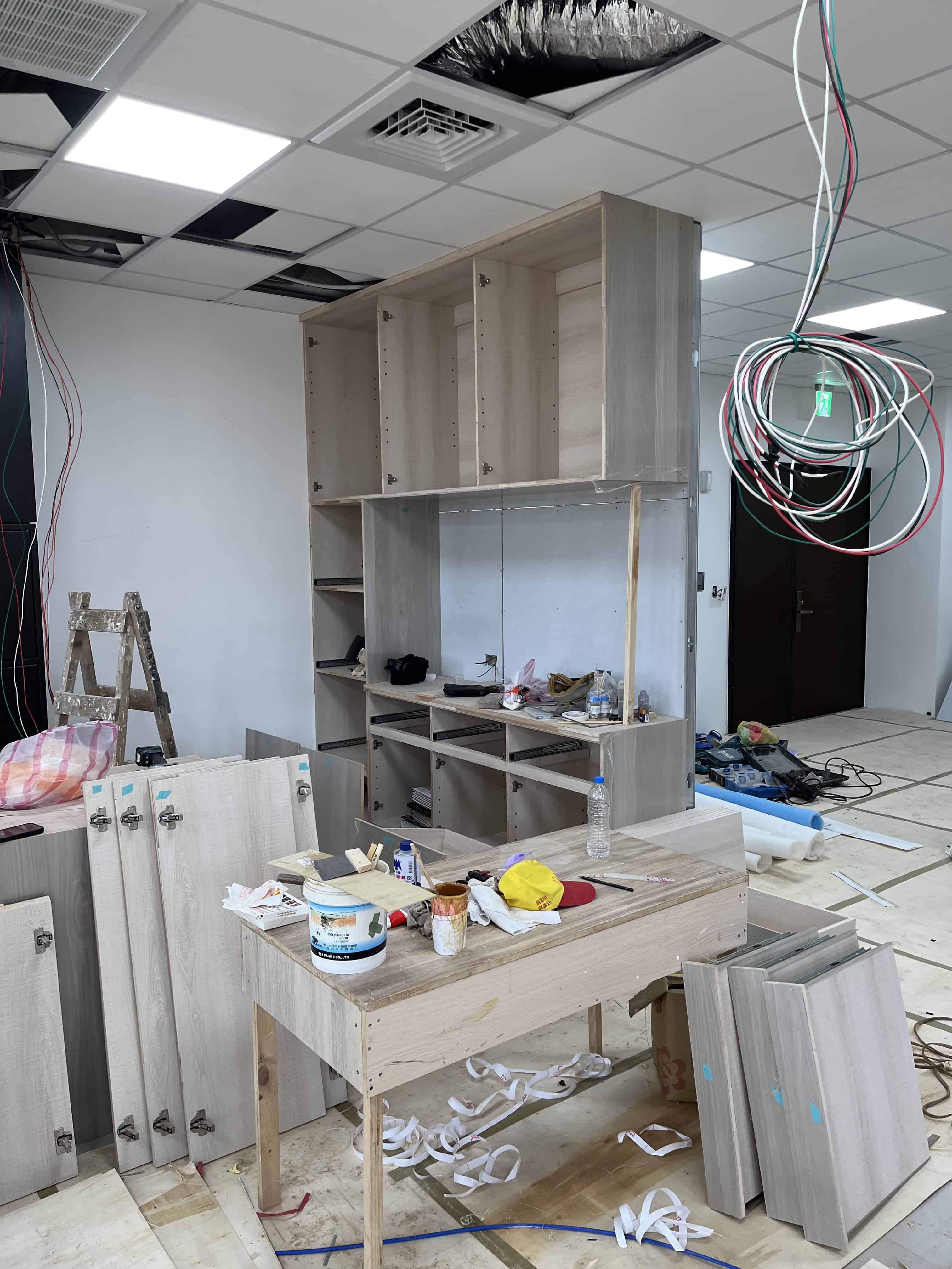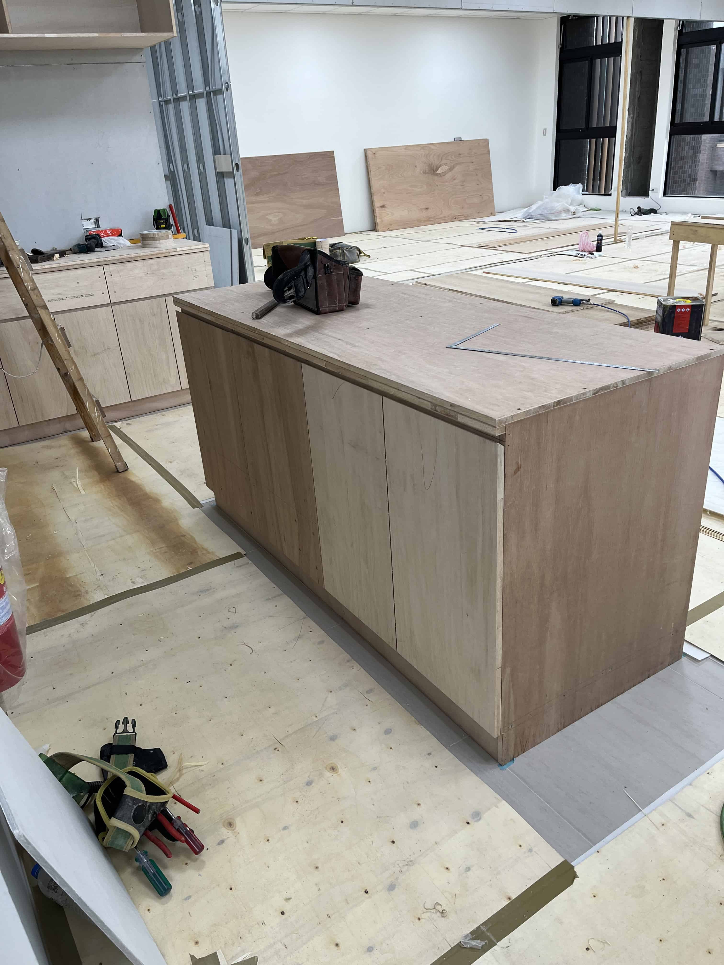 10/19。木作定位:茶水間中島、事務機區、文件區